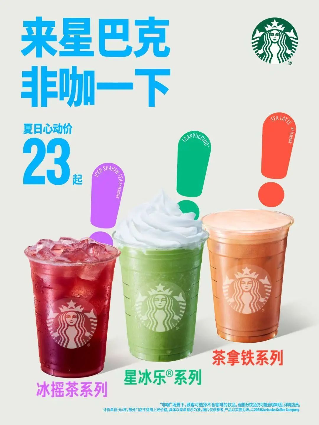 6月10日起,星巴克三大王牌品类——星冰乐、冰摇茶、茶拿铁,共计数十款产品将集体推出全新夏日“心动价”。以大杯为例,平均价格降幅达到5元左右。顾客最低仅需23元。